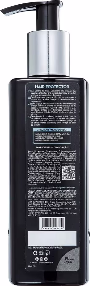 Truss Hair Protector - Protetor Térmico 250ml: desembaraça e protege dos raios UV, calor do secador e dos danos mecânicos causados pela escova.