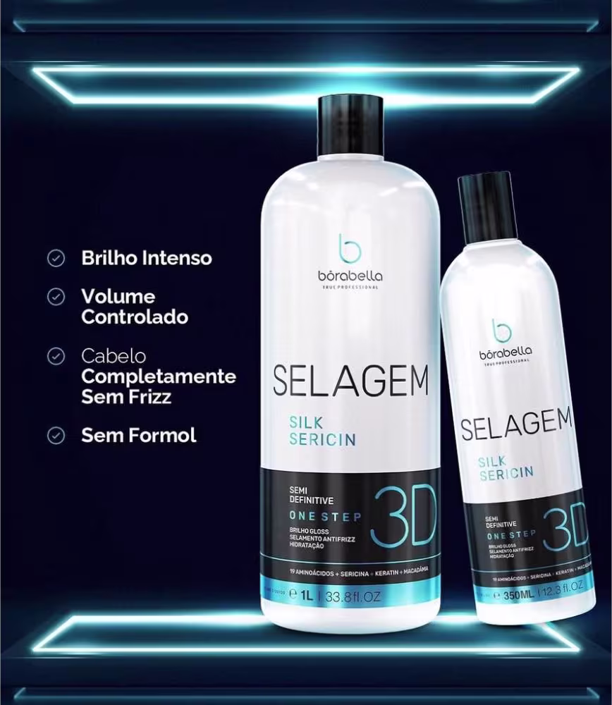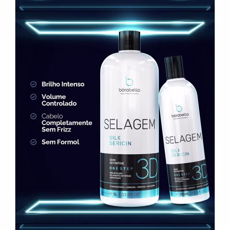 A Selagem Térmica Borabella 3D Semi Definitiva Sem Formol promove hidratação e brilho gloss intenso aos fios, além de não ressecar pontas e nem danificar, já que nutre e repara. Tem alta durabilidade do efeito liso natural, durando por até 3 meses.