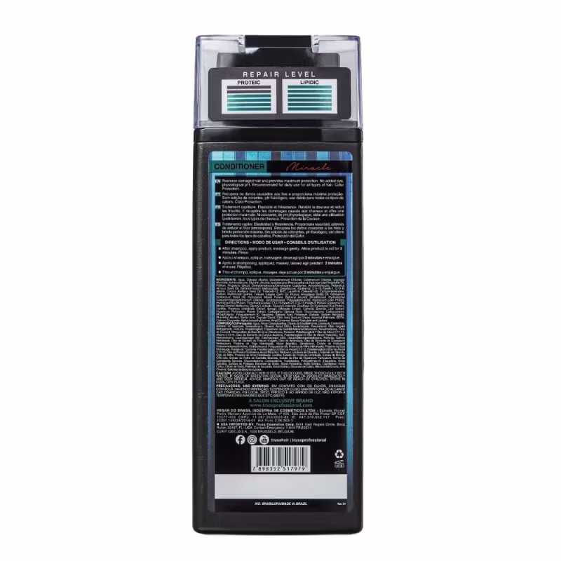 Truss Miracle - Condicionador 300ml: desembaraça, condiciona os fios, proporciona maciez e brilho 3D. Também recupera a elasticidade e resistência, ajudando no crescimento saudável da fibra capilar. Acaba com o frizz e mantém os fios sedosos e suaves por muito tempo.