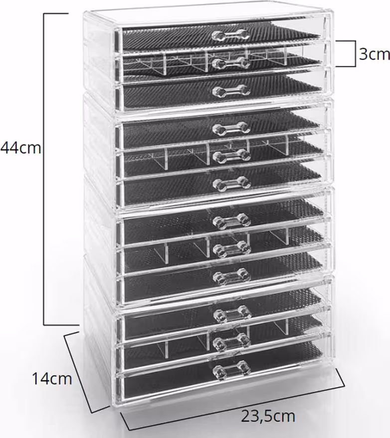 Não sei o CEPNosso organizador de maquiagem com 12 gavetas promove praticidade na sua rotina, deixando seu produtos de maquiagem organizados e de fácil visualização. Armazena produtos de maquiagem, cosméticos e acessórios. Possui 3 gavetas com divisórias para joias, suas divisórias são removíveis. Seu design combina com todos os ambientes!