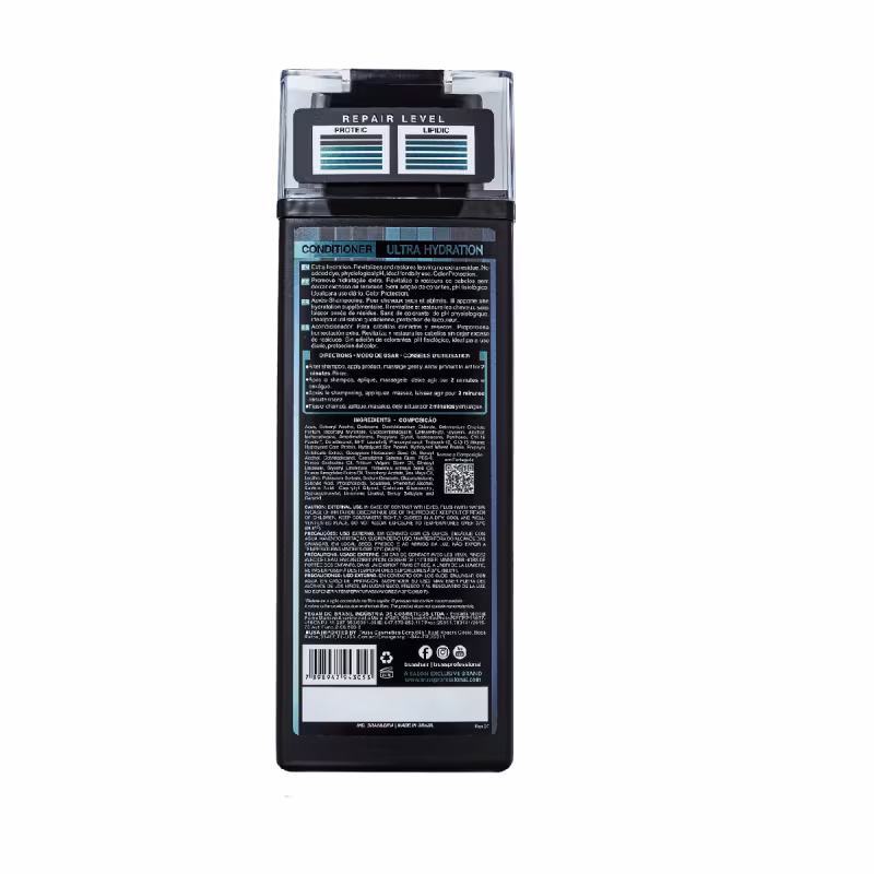 Condicionador Ultra Hydration: Desembaraça e nutre intensamente os fios, proporcionando maciez e brilho sem pesar.