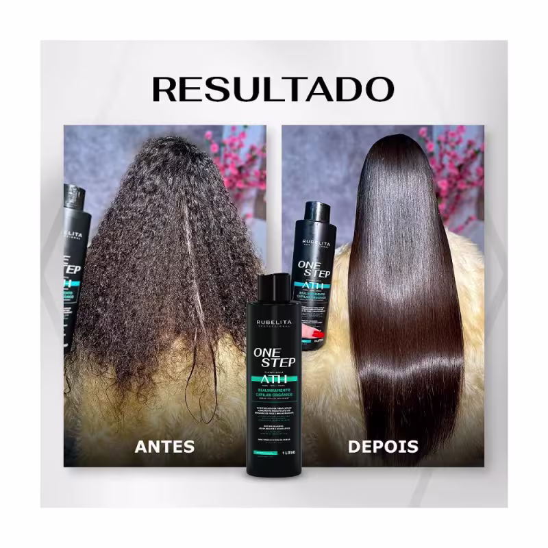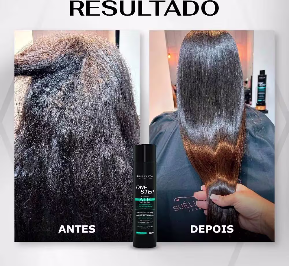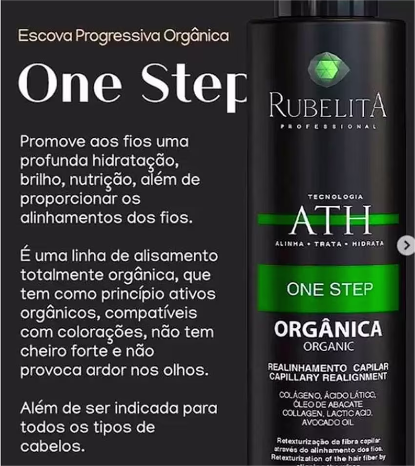 ESCOVA PROGRESSIVA ONE STEP RUBELITA – TECNOLOGIA ATH, OU SEJA, ALISA, TRATA E HIDRATA OS CABELOS AO MESMO TEMPO.