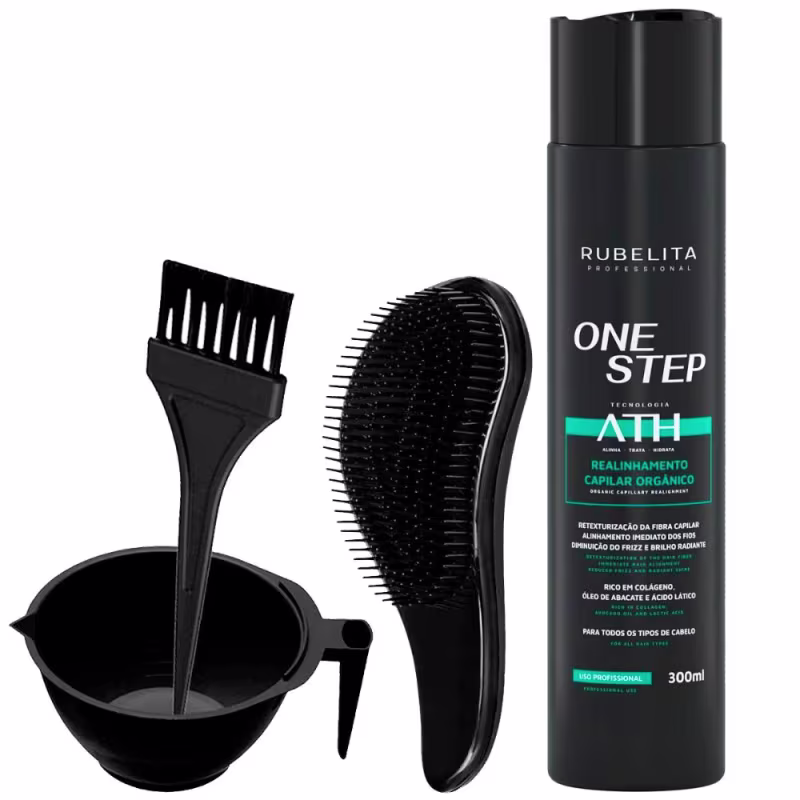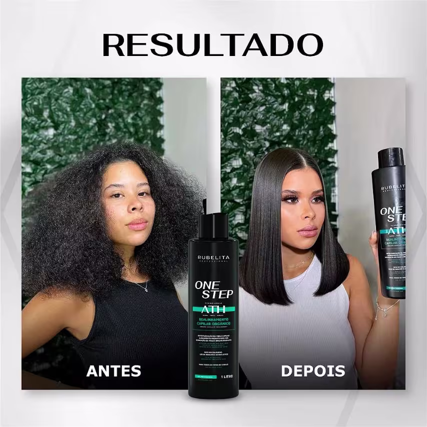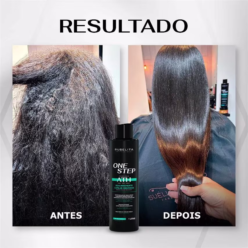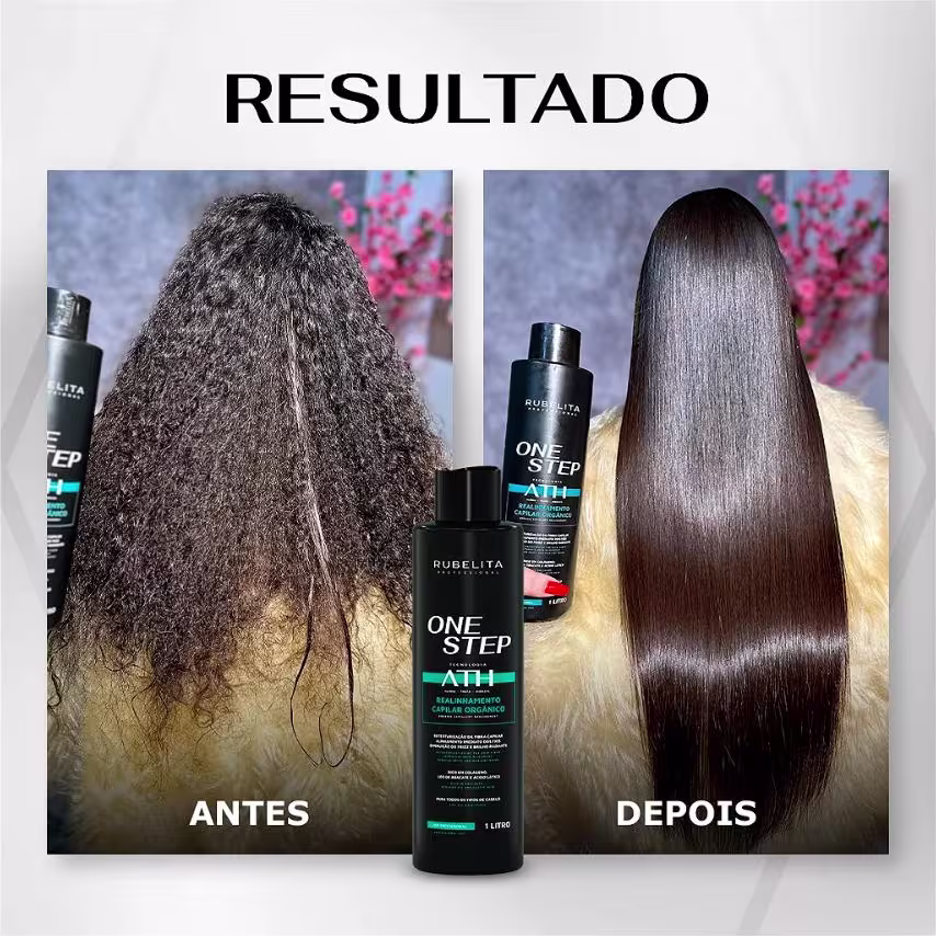 ESCOVA PROGRESSIVA ONE STEP RUBELITA – TECNOLOGIA ATH, OU SEJA, ALISA, TRATA E HIDRATA OS CABELOS AO MESMO TEMPO.