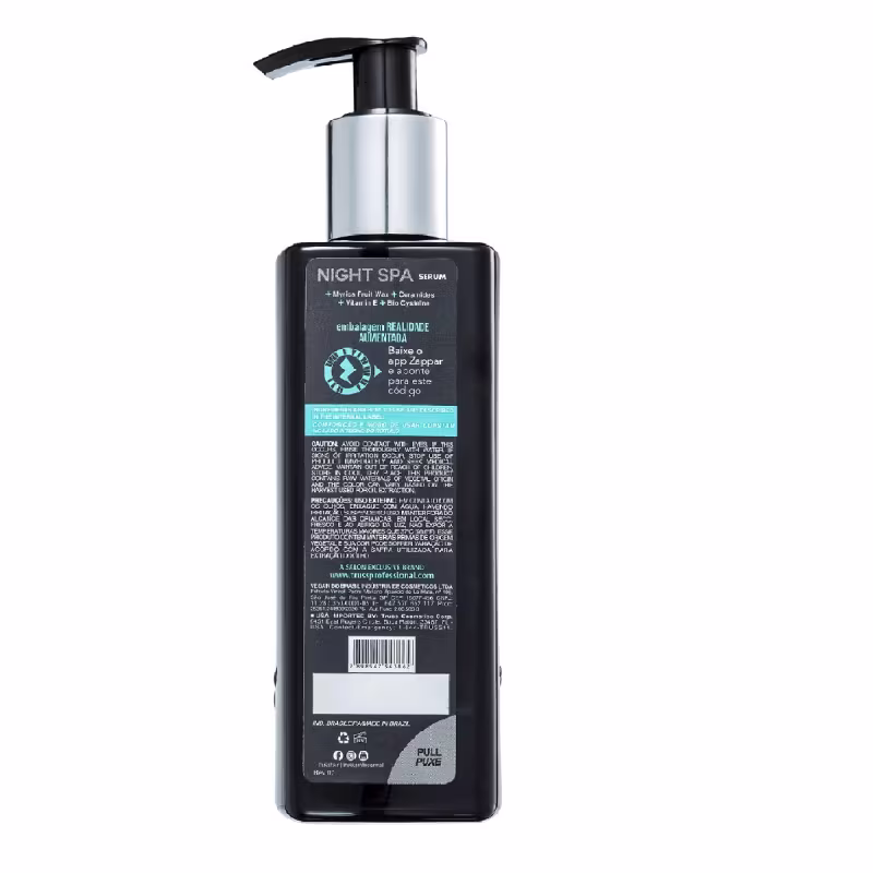 O Night Spa é um sérum noturno que age durante a noite para reparar os fios danificados, prevenir a quebra e garantir hidratação profunda, maciez e brilho. Aplique antes de dormir e deixe agir durante toda a noite para acordar com cabelos radiantes de beleza!
