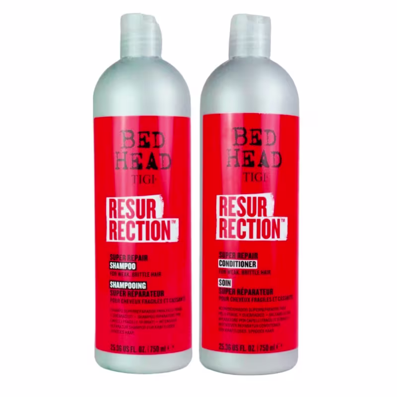 Não sei o CEPKit com shampoo e condicionador em tamanho salão, para cabelos danificados, fracos e quebradiços. Kit TIGI Bed Head Resurrection Salon Duo é ideal para reparação intensa.
