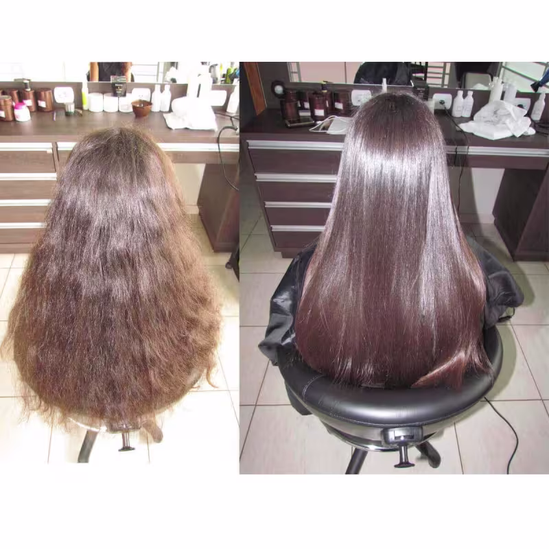 Após avaliação e diagnóstico do fio e do tipo de cabelo realizada por profissional cabeleireiro. Aplique o produto sobre os cabelos secos ou levemente úmidos, distribuindo em pouca quantidade de maneira uniforme do comprimento até as pontas com auxilio de pente fino, evitando contato direto com o couro cabeludo. Deixe agir de 30 a 50 minutos conforme, em seguida enxágue totalmente, retire o excesso de água com a toalha suavemente sem esfregar. Realize a secagem e escovação com auxilio de um secador. A seguir finalize com uma prancha profissional em temperatura máxima, pranchando de 10 a 12 vezes por mecha fina. Pronto seu cabelo estará finalizado com volume controlado e sem frizz.