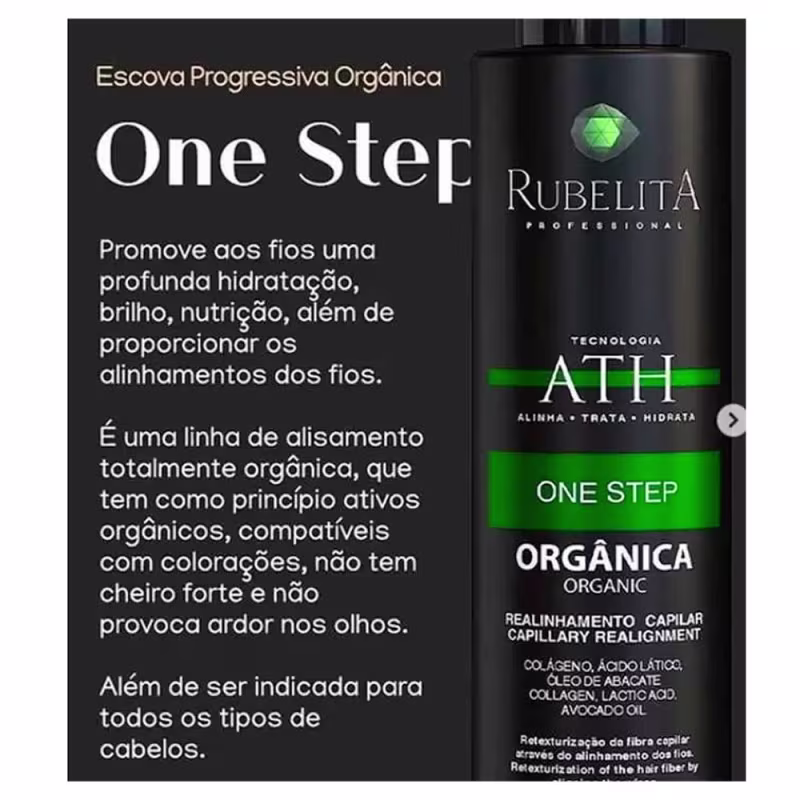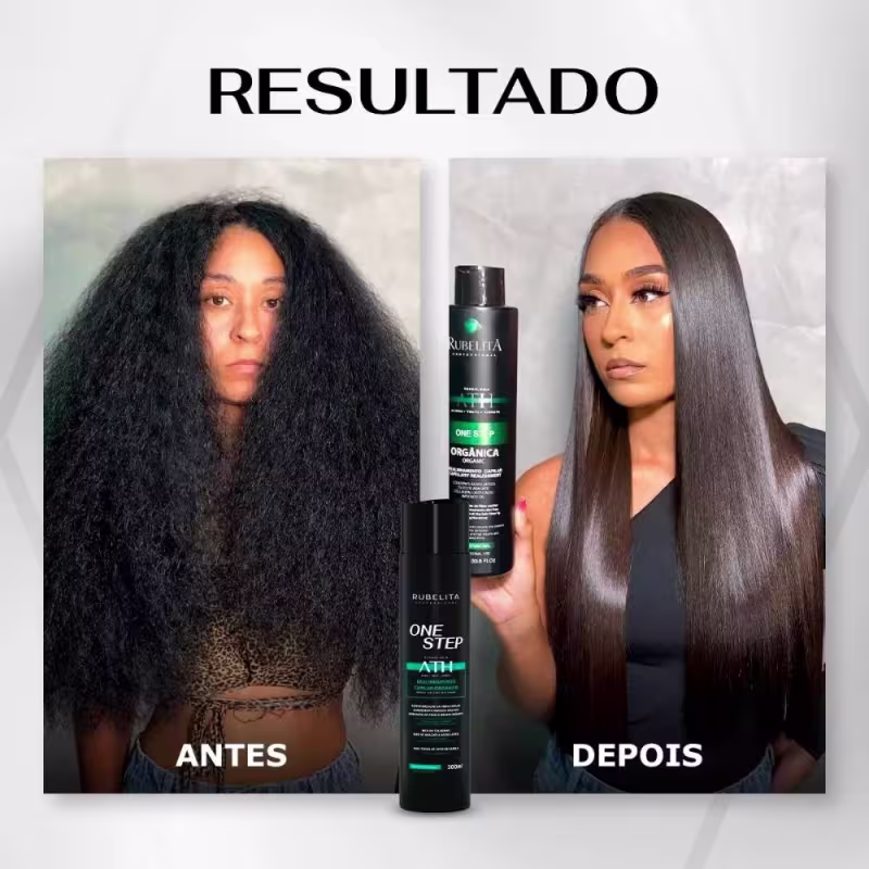 ESCOVA PROGRESSIVA ONE STEP RUBELITA – TECNOLOGIA ATH, OU SEJA, ALISA, TRATA E HIDRATA OS CABELOS AO MESMO TEMPO.