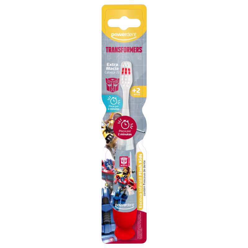 Transformers é perfeita para a escovação dos dentes das crianças, possui cerdas extra macias, que tornam a escovação mais suave, sem machucar as gengivas e um cabo anatômico, emborrachado que se adapta perfeitamente às mãos dos pequenos. Ela pisca durante 2 minutos- timer para a escovação completa dos dentinhos.