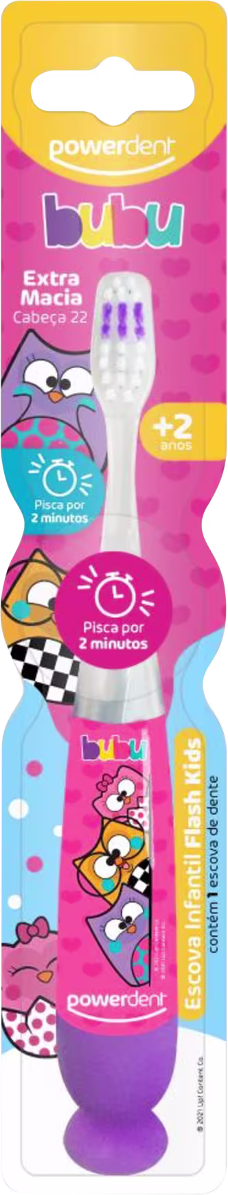 Bubu e as Corujinhas é perfeita para a escovação dos dentes das crianças, possui cerdas extra macias, que tornam a escovação mais suave, sem machucar as gengivas e um cabo anatômico, emborrachado que se adapta perfeitamente às mãos dos pequenos. Ela pisca durante 2 minutos- timer para a escovação completa dos dentinhos.
