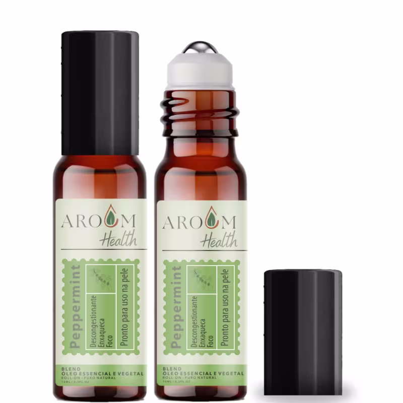 O Roll-on de Óleo Essencial de Peppermint (hortelã-pimenta), da Aroom, é um produto que combina as propriedades terapêuticas do Óleo Essencial de Peppermint com a praticidade de um frasco roll-on à base carreadora de Óleo vegetal Semente de Uva, permitindo uma aplicação direta e fácil na pele. Este produto oferece diversos benefícios para a saúde e o bem-estar, aproveitando as características refrescantes e revigorantes.
