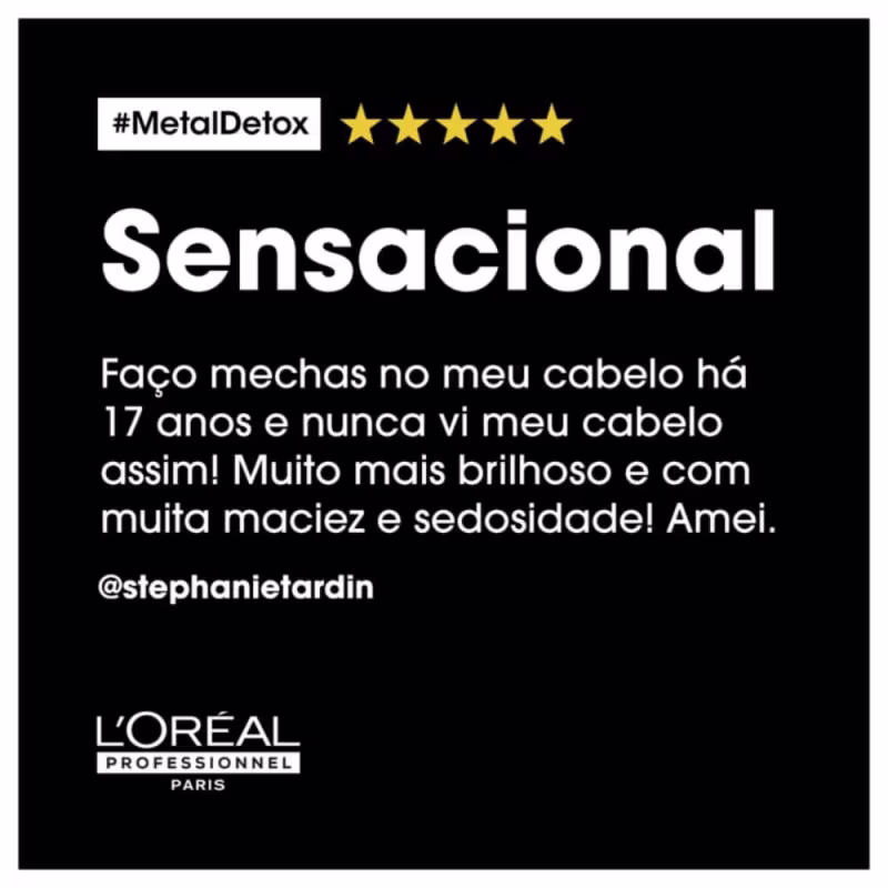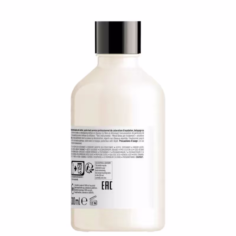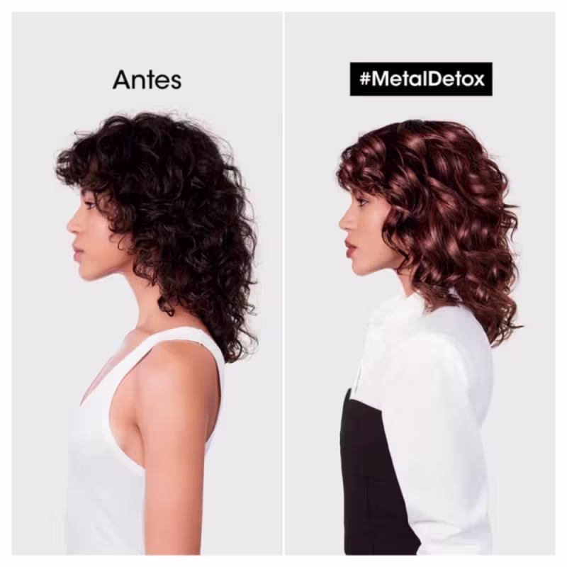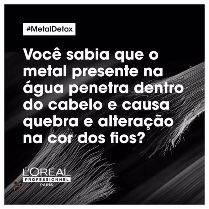 Shampoo L'Oréal Professionnel Metal Detox evita que novas partículas de metal voltem, após serviços de cor, como mechas ou descoloração. O metal dentro da fibra cria um risco de quebra e afeta negativamente os resultados da cor, durante os serviços de tintura. Garante uma espuma concentrada, para limpeza delicada, e mais vibrância no tom, com 87% menos risco de quebra 100% de resultado de cor confiável.