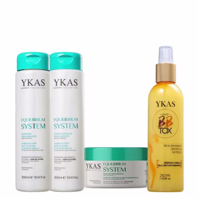 Ykas Equilibrium System Kit Pequeno Completo + Ykas BBtox Líquido Desmaia Cabelo 250ml