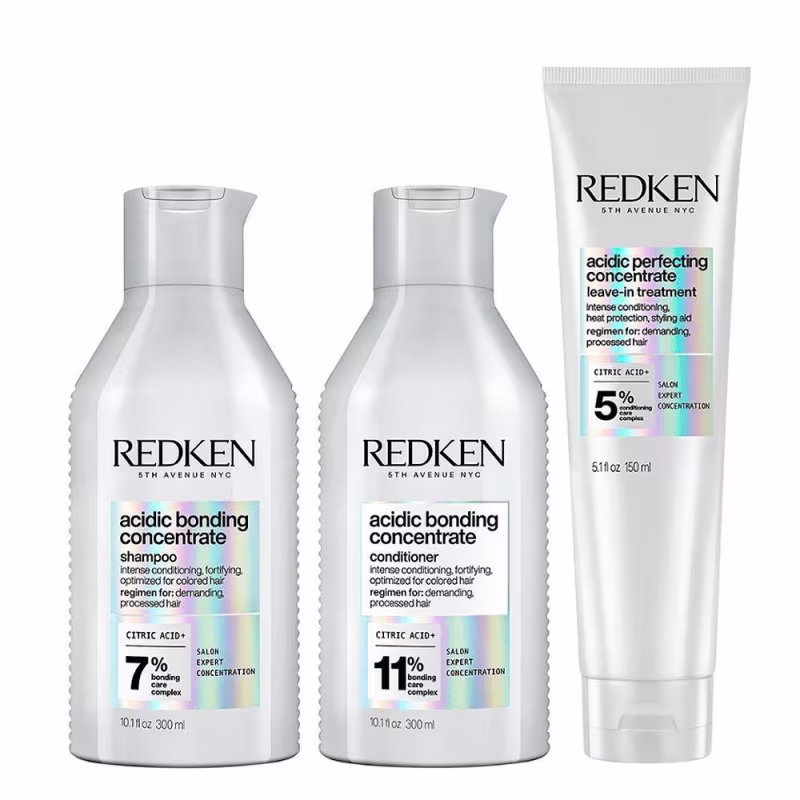 - O Shampoo Redken Acidic Bonding Concentrate é enriquecido com um sistema de reparação concentrado, desenvolvido para cabelos secos e danificados. Sua ação confere força e condicionamento intenso, além de melhorar a resistência e equilibrar o pH para um cabelo mais saudável. Em fios descoloridos, age prevenindo o desbotamento da cor.