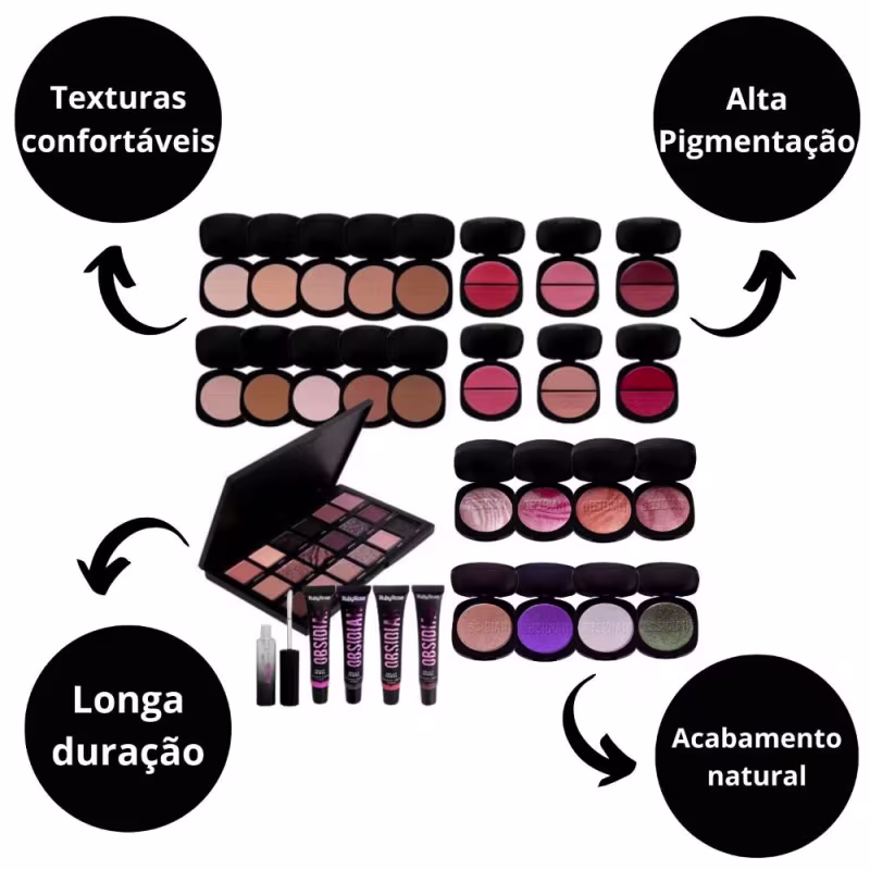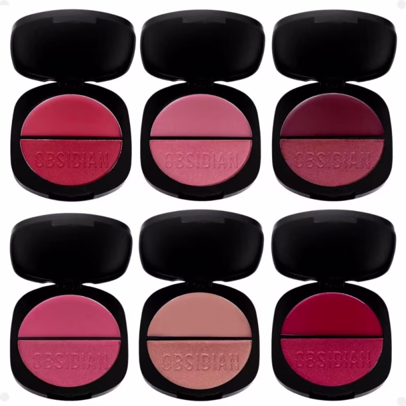 Blush Duo Obsidian Gemini O Duo de Blush Gemini da Linha Obsidian é uma inovação em cosméticos, oferecendo duas opções de texturas em um único produto, permitindo personalização e versatilidade na aplicação. 1. Blush Cremoso: Textura Confortável, Desenvolvido para ser leve e não pegajoso, o blush cremoso é ideal para todos os tipos de pele, desde as mais secas até as mais oleosas. Sua formulação cremosa permite uma aplicação suave, que pode ser facilmente esfumada, oferecendo um acabamento natural que realça sem sobrecarregar. 2. Blush Compacto: O blush compacto tem uma textura finamente moída que proporciona um efeito acetinado, deixando a pele com um toque aveludado. Este blush é ideal para quem busca precisão na aplicação, permitindo construir a intensidade da cor de maneira controlada, desde um leve rubor até uma cor mais marcante.