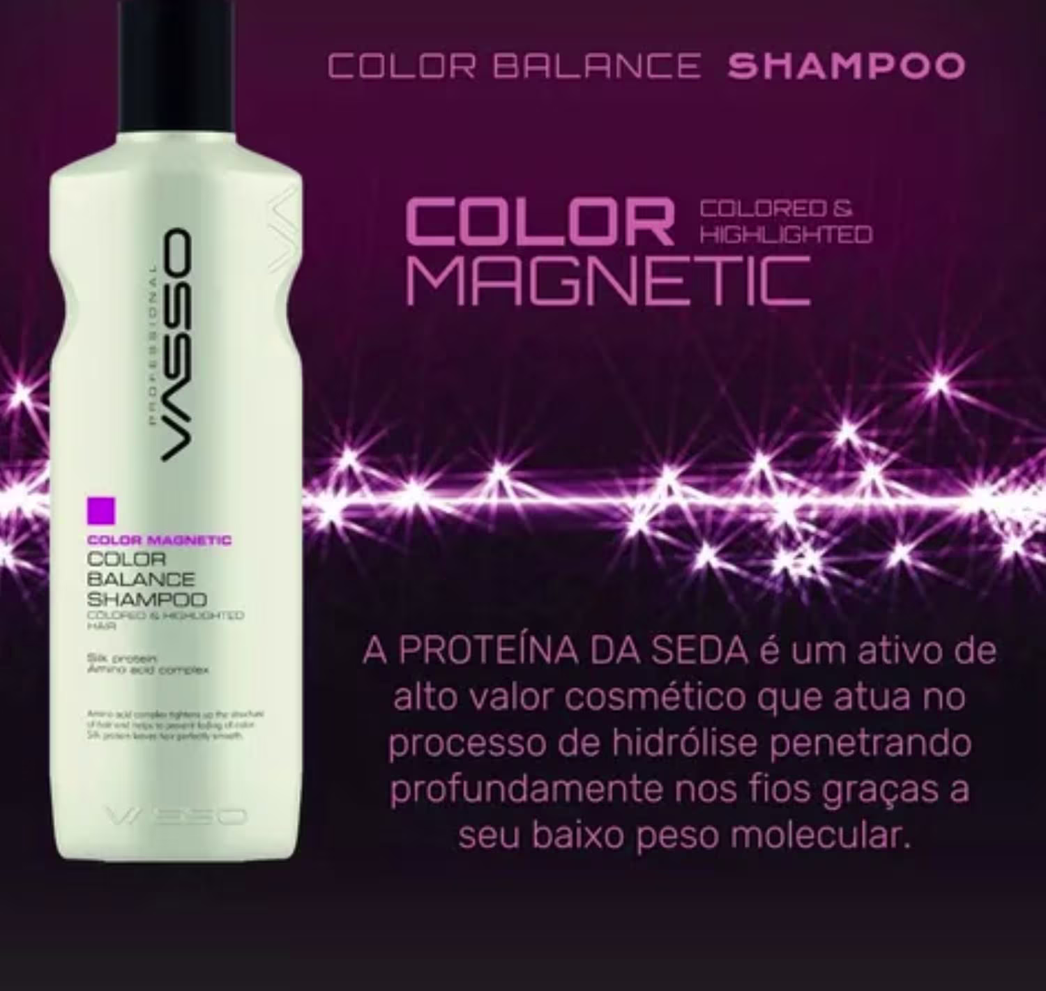Shampoo Magnetic Color Balance, Vasso, Proteçãoda Cor, Elastiocidade e Brilho, Importado, 500ML