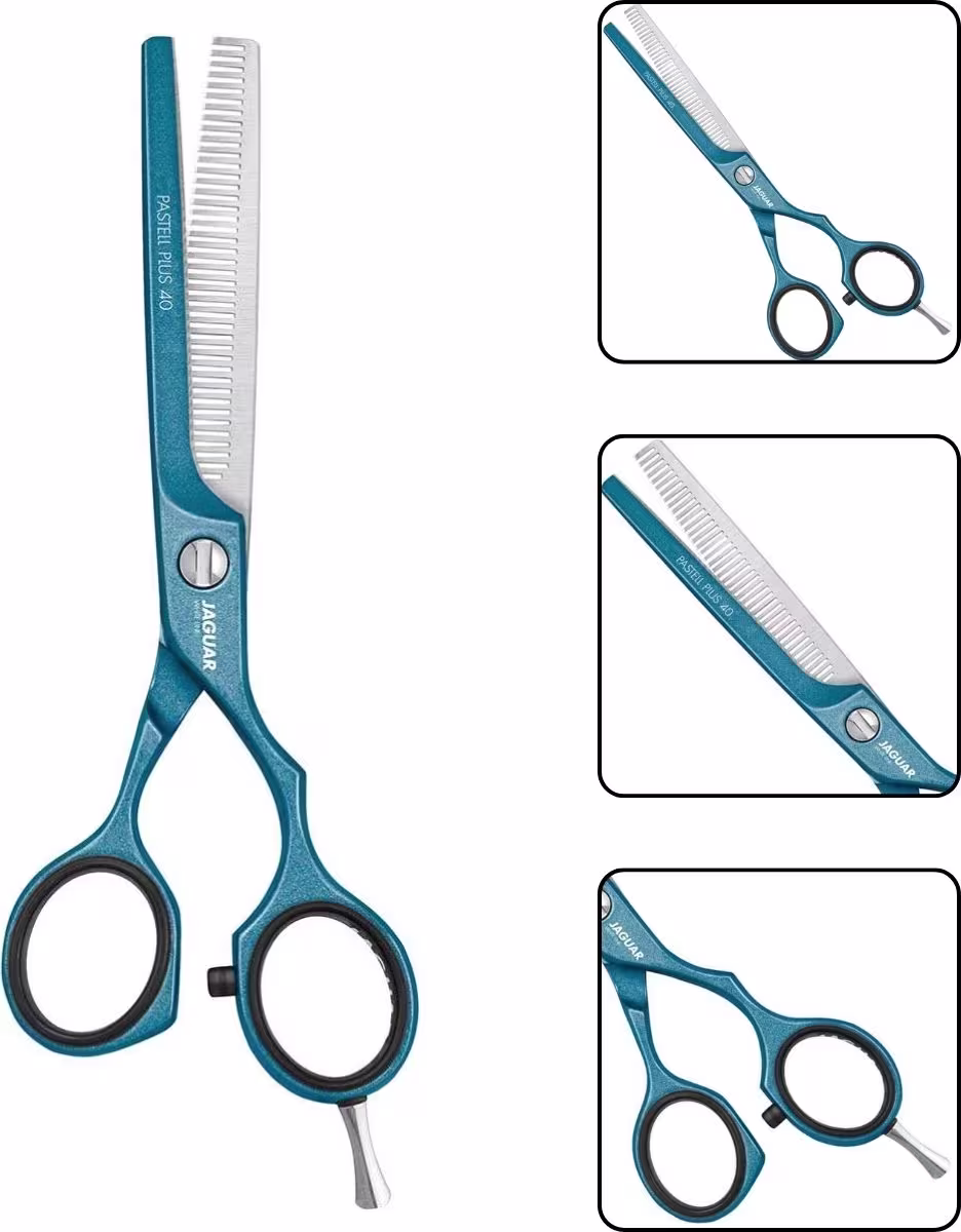 As tesouras de texturização JAGUAR PASTELL PLUS 40 ATLANTIC vêm na cor da moda "Atlantic“. Está disponível no formato clássico do cabo (no tamanho 5,5"), bem como na variante offset (no tamanho 5,5"). Com 40 dentes desbastes, essa tesoura de cabeleireiro facilita a modelagem e afina os cabelos com precisão. São tesouras de texturização confiáveis para cortes de cabelo femininos e masculinos . A JAGUAR WHITE LINE promete uma seleção diversificada. Os modelos de tesouras da coleção PASTELL PLUS não são apenas coloridos, mas também possuem um revestimento metálico de alta qualidade que oferece proteção contra alergias ao níquel.