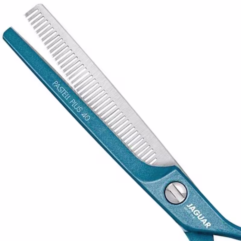 LâminaTodas as tesouras de cabeleireiro e de texturização possuem as propriedades de corte comprovadas da JAGUAR WHITE LINE. Graças ao processamento do aço especial forjado, as lâminas clássicas com ângulo de corte plano garantem uma nitidez muito boa. Os 40 dentes de desbaste finos desta tesoura de texturização garantem um corte seguro e preciso. As pontas dos dentes do PASTELL PLUS 40 são especialmente equipadas para evitar que o cabelo escorregue. Isso torna essas tesouras de texturização muito adequadas para modelar cortes de transição.