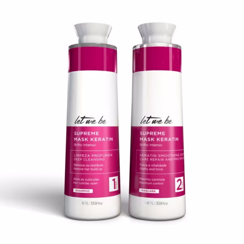 Passo 2 - Apos ter feito a lavagem com o Let Me Be Shampoo Deep Cleansing Supreme Liss e feito a remocao completa do produto, aplique o Let Me Be Redutor Keratin Smoothing Supreme Liss sobre os cabelos umidos, comecando pela raiz e espalhando por todo cabelo. Nao enxague. Seque os cabelos e finalize como desejar.
