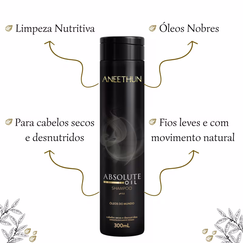 1 Óleo Nutri Oil 55ml Absolute Oil Aneethun CREAM OIL Promove umectação intensiva retendo a água no interior da fibra capilar. Sua carga lipídica perfeitamente equilibrada reúne os multibenefícios dos óleos de Argan, Coco, Macadâmia, Avelã, Camelina, Jojoba e Crambe, promovendo nutrição profunda para cabelos macios, sedosos e com toque aveludado. Modo de uso: Aplique ao longo dos fios, principalmente nas regiões mais danificadas, massageando mecha a mecha. Deixe agir por no mínimo 30 minutos. Em seguida, enxágue e prossiga com o tratamento Absolute Oil. SHAMPOO ABSOLUTE OIL Oferece uma limpeza nutritiva. Limpa delicadamente sem pesar ou agredir a fibra capilar, deixando os fios leves e com movimento natural. Modo de uso: Aplique friccionando delicadamente todo o couro cabeludo com as pontas dos dedos. Enxágue. Se necessário, repita a operação. MÁSCARA ABSOLUTE OIL Nutrição profunda e duradoura que reúne os multibenefícios dos mais nobres óleos do mundo. Recupera intensamente a saúde e a meleabilidade dos cabelos secos e desnutridos , garantindo um toque suave e aveludado sem pesar os fios. Modo de uso: Aplique enluvando os fios, iniciando na altura da orelha em direção ás pontas . Para completa absorção dos ativos, deixe agir por 2 minutos e enxágue. FINALIZADOR ABSOLUTE OIL Proporciona desembaraço imediato e nutrição profunda para cabelos secos e desnutridos , garantindo uma textura sedosa e com muito trabalho. Possui filtro solar, oferece proteção térmica, evita o surgimento fo frizz, devolve maleabilidade e resistência aos cabelos. Modo de uso: Aplique uniformemente no cabelo úmido. Não enxágue. Penteie de forma habitual e finaliza como preferir. NUTRI OIL Infusão poderosa que reúne o multibenefícios dos mais nobres óleos do mundo, nutrindo profundamente e recuperando a beleza dos fios. Sua fórmula valiosa suavisa a cutícula capilar, promove emoliência, brilho, toque aveludado e reparação profunda das pontas. Modo de uso: Aplique uniformemente no cabelo úmido ou seco. Não enxágue. Penteie de forma habitual e finalize como desejar. SOBRE A LINHA ABSOLUTE OIL: Absolute Oil é uma linha de tratamento que nutre profundamente os fios através de uma infusão poderosa dos mais nobres óleos do mundo.