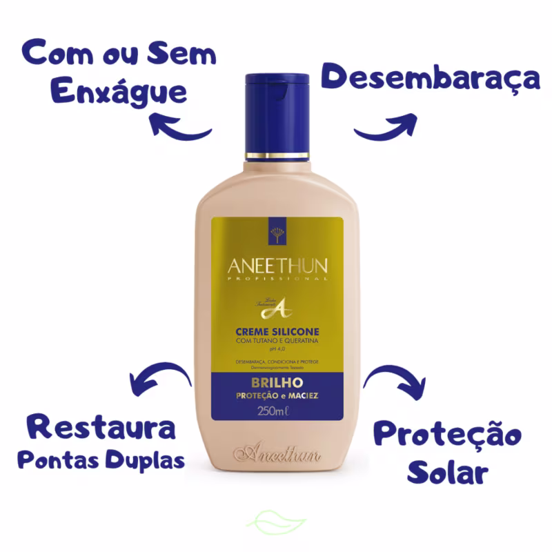 Hidrata e nutre suavemente os fios, proporcionando brilho e maciez. Revitaliza os cabelos, desembaraça e restaura pontas duplas.