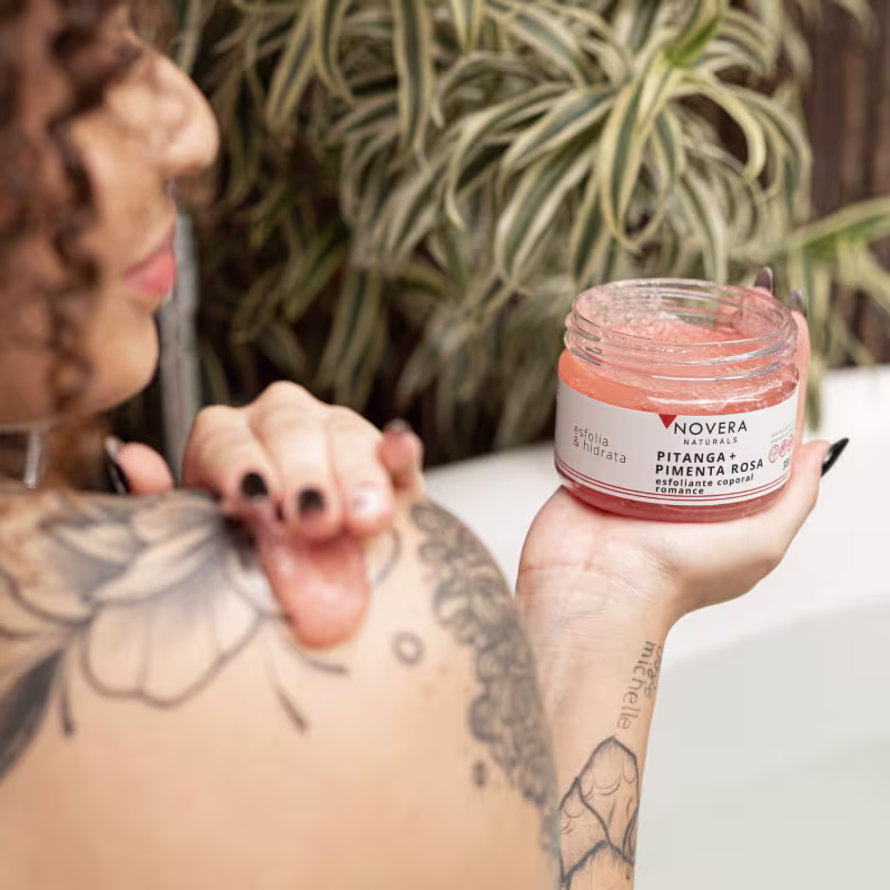 Não sei o CEPO Esfoliante Corporal da linha Novera Naturals Pitanga + Pimenta Rosa é o segredo para uma pele suave, radiante e revigorada. Formulado com cristais de açúcar, este esfoliante proporciona uma esfoliação suave e eficaz, removendo delicadamente as células mortas e as impurezas da pele, deixando-a macia, renovada e profundamente hidratada.