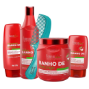 Por sua vez, o Leave-in Banho de Verniz Morango atua na proteção da cor e na blindagem dos fios contra altas temperaturas, poluição e vento. Auxilia na modelagem dos fios, redução do frizz e controle do volume. É um excelente aliado para ser utilizado antes de escovar os cabelos, já que facilita o penteado.