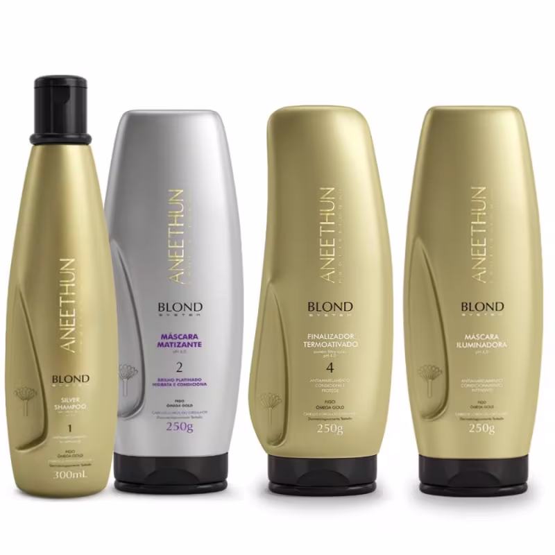 Para um resultado ainda melhor, utilize a linha completa Aneethun Blond System. Consulte um profissional de beleza para obter orientação personalizada sobre o uso dos produtos.