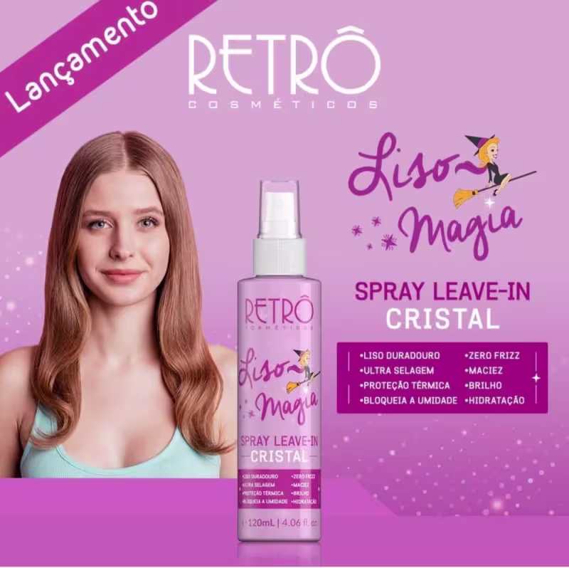 RETRO COSMETICOS LISO MAGIA SPRAY LEAVE-IN CRISTAL 120ML Ver mais ❯