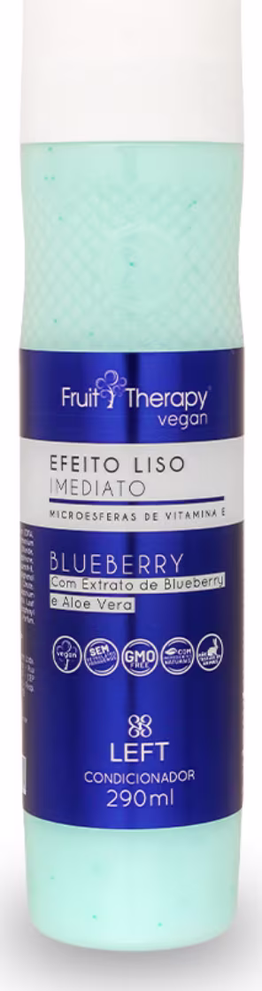 Não sei o CEPO Condicionador Efeito Liso Imediato Blueberry e Aloe Vera Fruit Therapy Vegan da Left Cosméticos disciplina os fios mais rebeldes e doa mais peso aos cabelos volumosos.
