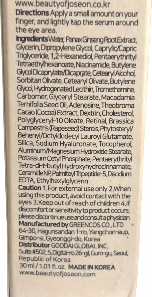 Beauty of Joseon - Revive Eye Serum: Ginseng + Retinal 30ml