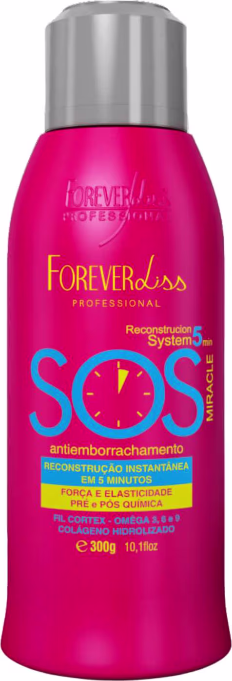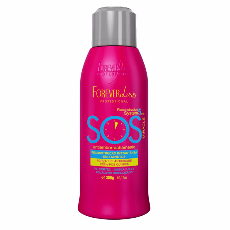 O Forever Liss SOS Antiemborrachamento Reconstrutor Miracle de ação rápida 5 minutos é um verdadeiro milagre no cabelo das mulheres, pois transforma os fios elásticos e emborrachados através da ação da química em cabelos totalmente saudáveis, macios e recuperados em minutos. Desenvolvido com Tecnologia Exclusiva Forever Liss a base de um complexo de aminoácidos que visa recuperar a estrutura da fibra, colágeno para evitar a quebra do fio e Ômega 3,6 e 9 que fortificam os cabelos. O SOS Antiemborrachamento possui proteínas e aminoácidos de baixo peso molecular que age na reposição de massa cortical, agindo de forma rápida reparando e reconstruindo toda área afetada pelas agressões dos tratamentos químicos.
