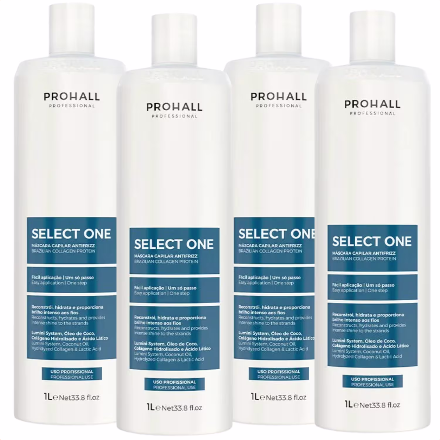 04 Unidades de Select One 1 Litro Prohall cada, totalizando 4 Litros.