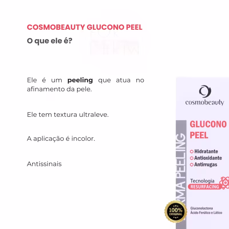 Derma Peeling Glucono Peel penetra lenta e suavemente na pele, normaliza a renovação celular, além de recondicionar a barreira natural do tecido. Reduz rugas e linhas preservando a umectação cutânea.