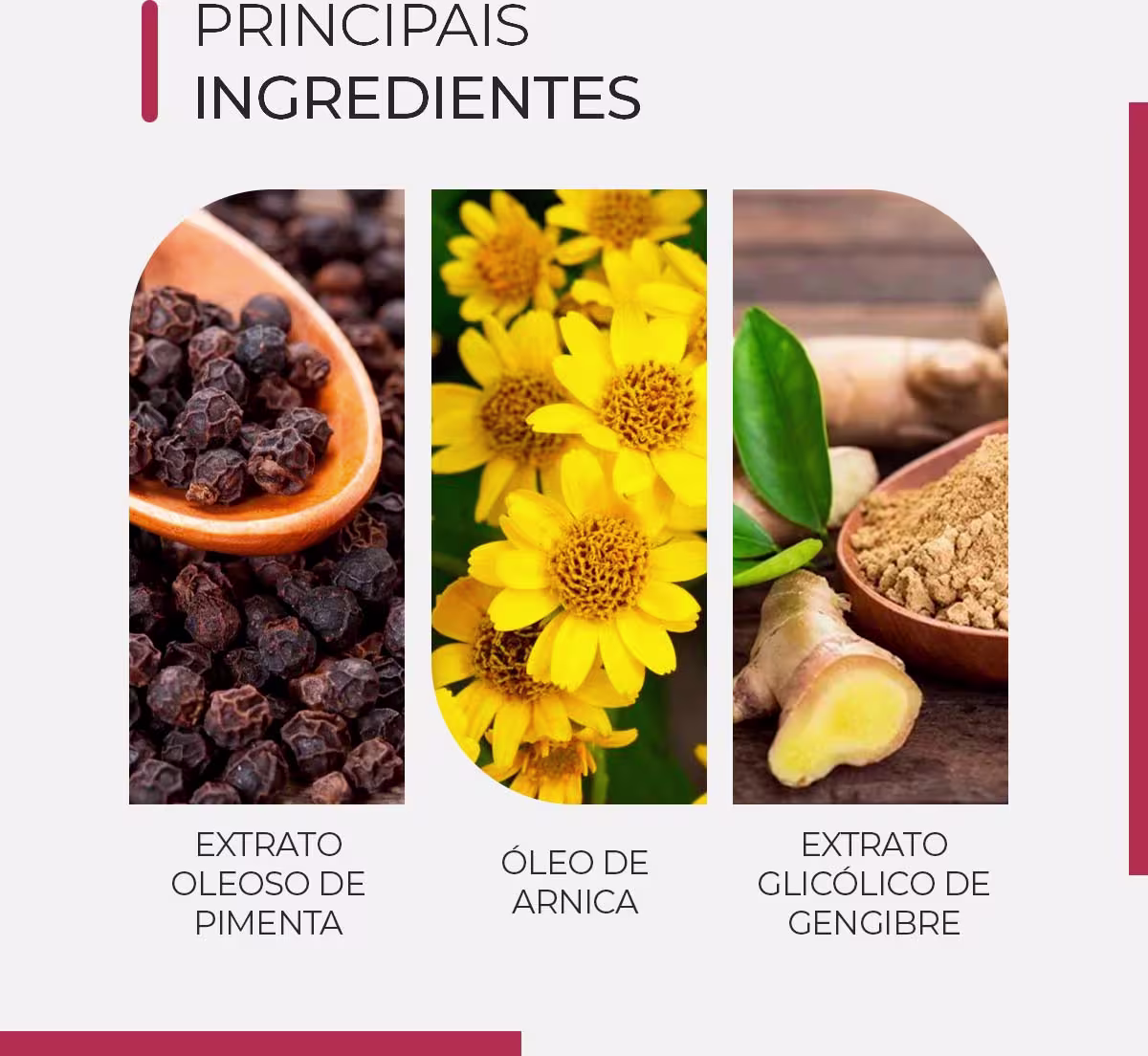 • Contribui para a ação de lipólise.Principais ingredientes:•Extrato Oleoso De Pimenta Negra