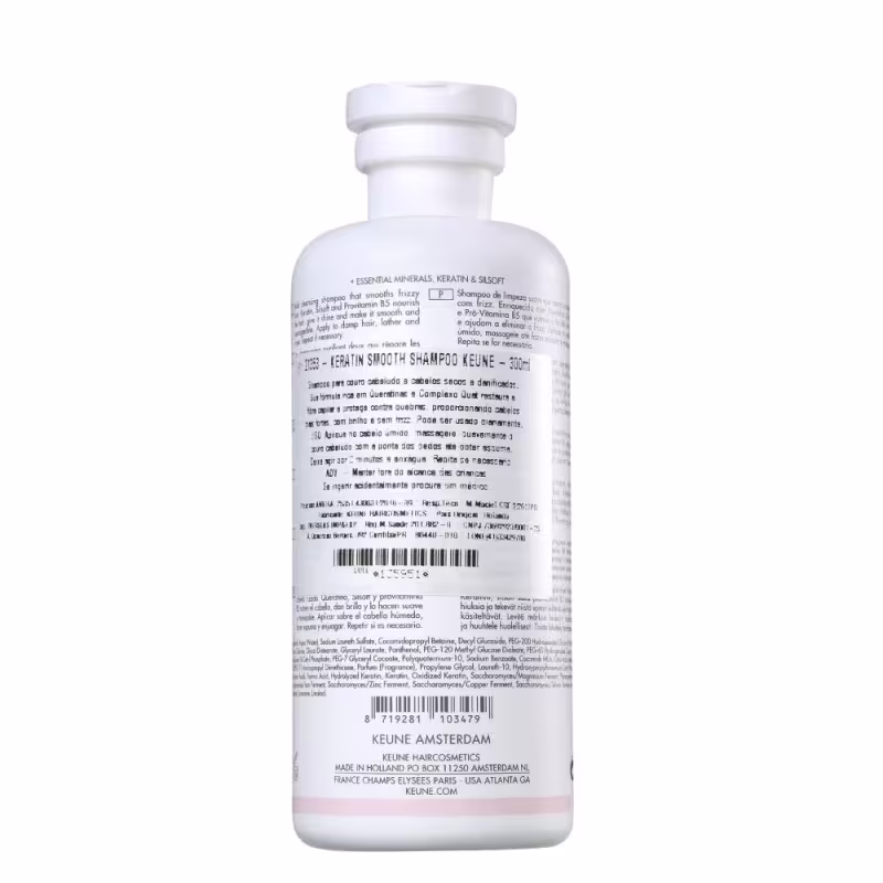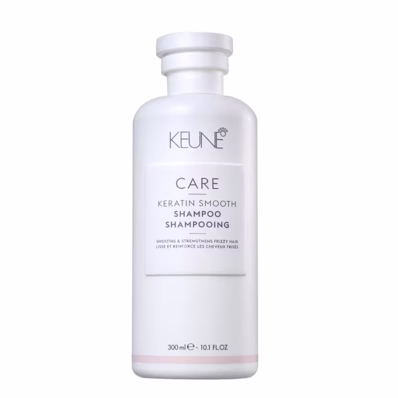 Keune Care Keratin Smooth - Shampoo 300ml: indicado para a reconstrução de áreas fragilizadas nos cabelos finos a médios, principalmente aquelas com danos causados por mechas e alisamentos, o Care Keratin Smooth Shampoo aumenta a defesa dos fios de dentro para fora. Sua fórmula repõe a fibra capilar perdida nas agressões químicas sofridas pelo cabelo.
