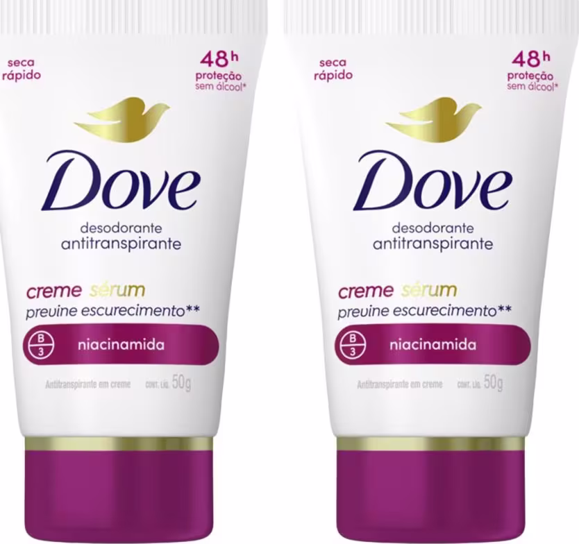 - 02 Desodorantes Creme Sérum Dove Antitranspirante Previne Escurecimento.
