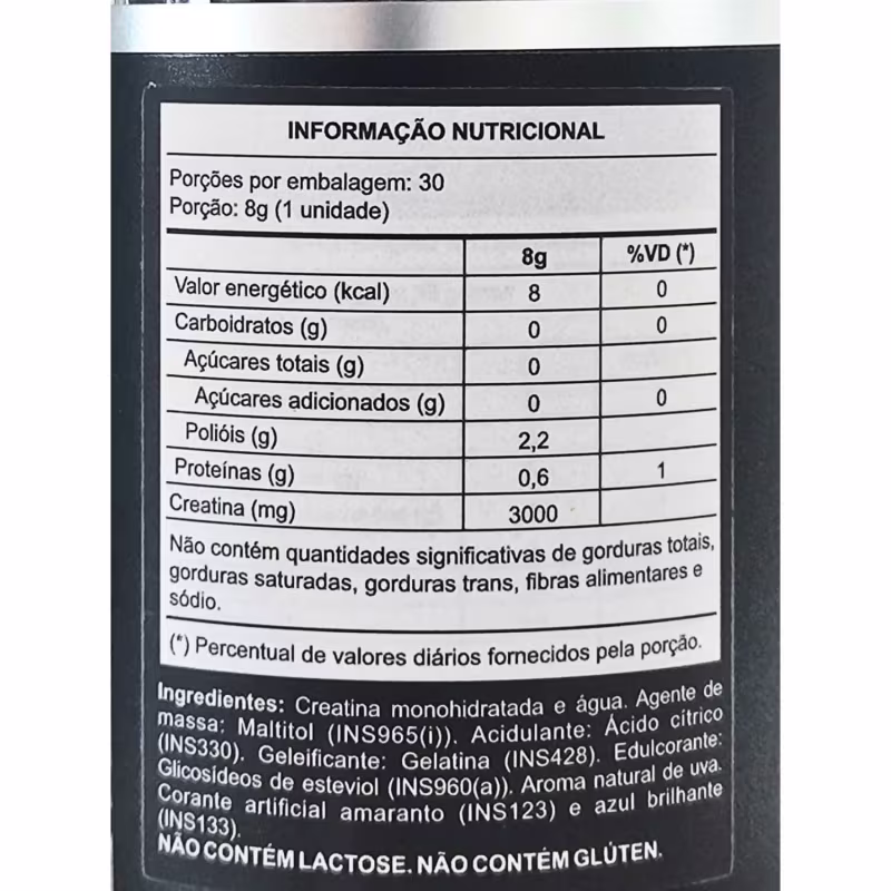 Contém: 01 Un. com 30 gomas com 3g de Creatina por Goma