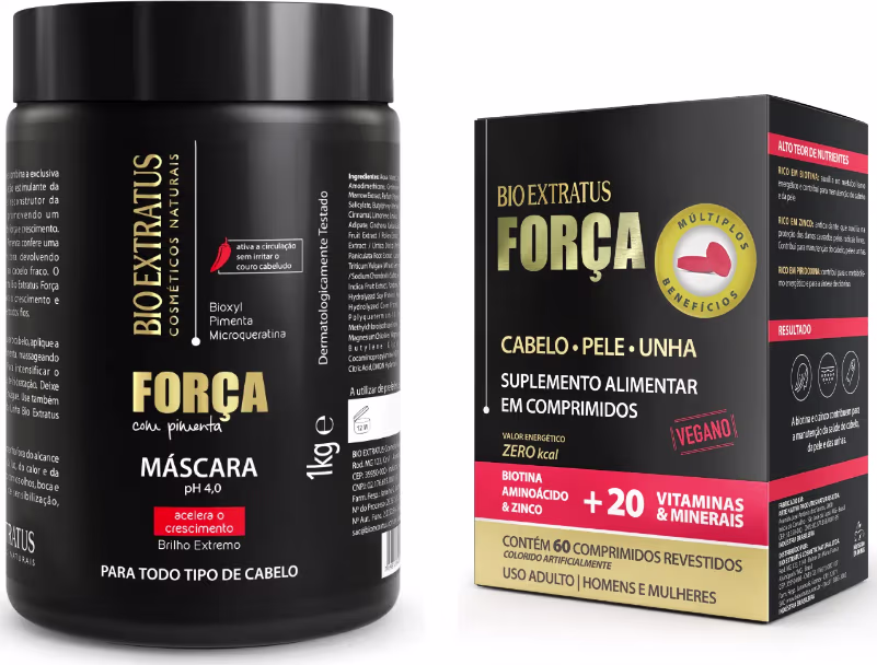 KIT MASCARA E SUPLEMENTO CRESCIMENTO FORÇA COM PIMENTA BIO - BIO EXTRATUS
