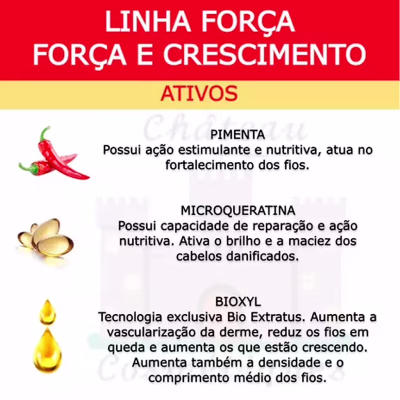 O Kit Bio Extratus Força com Pimenta Salon Duo apresenta fórmula inovadora que devolve o brilho, a força e a vitalidade aos fios enfraquecidos. Sua formulação uniu a tecnologia exclusiva Bioxyl às propriedades da pimenta, que ativa a circulação sanguínea para estimular o crescimento do cabelo. Tudo isso somado ao poder reconstrutor da microqueratina.