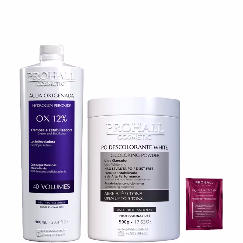 Kit Descoloração Pó Ultra Clareador Branco e Ox 40 Prohall Ver mais ❯