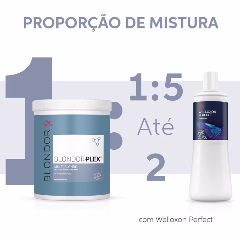 O Pó Descolorante Wella Professionals BlondorPlex N°1 clareia até 7 tons, sem danificar os fios, garantindo até 97% menos quebra* e sem comprometer o clareamento dos fios. A fórmula conta ainda com moléculas antiamarelamento e tecnologia Dust Free que facilita a aplicação.