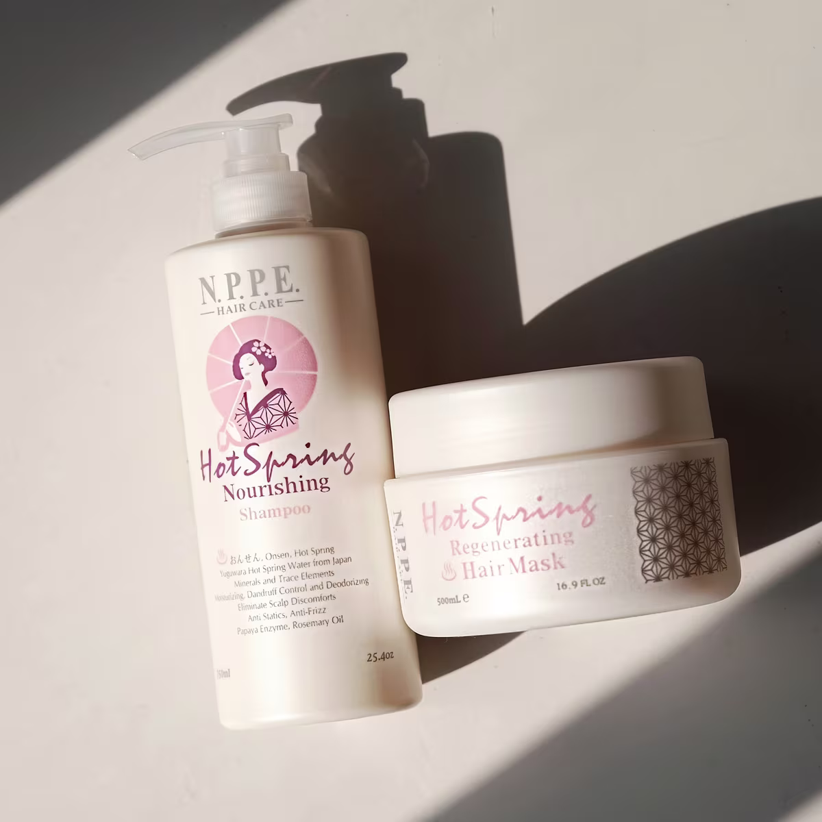 Shampoo Hot Spring Nourishing N.P.P.E. para todos os tipos de cabelos, em especial os sem vitalidade, fracos e ressecados. Limpa suavemente o cabelo e o couro cabeludo nutrindo e restaurando a estrutura do cabelo em todo o comprimento para torná-lo mais brilhante, sedoso e forte.