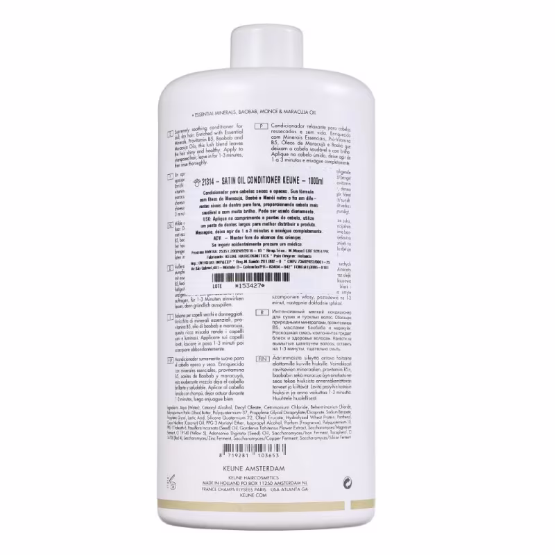 Keune Care Satin Oil - Condicionador 1000ml: deixa o cabelo leve e macio com o aumento do brilho e do desembaraço