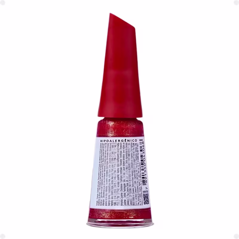 ACETATO DE BUTILA, ACETATO DE ETILA, TOSILAMIDA/RESINA EPÓXI, PIROXILINA, ÁLCOOL ISOPROPÍLICO, ÁLCOOL ETÍLICO, COPOLÍMERO DE ACRILATOS/ACRILATO DE ETILEXILA, CITRATO DE ACETIL TRIBUTILA, DIÓXIDO DE SILICIO. PODE CONTER: (CORANTE VERMELHO 15850, CORANTE VERMELHO 15865, VERMELHO ALLURA 129, AMARELO DE QUINOLINA LACA DE ALUMÍNIO, CORANTE AZUL 74160, CORANTE BRANCO 77000, CORANTE BRANCO 77019, CORANTE PRETO 77266, DIÓXIDO DE TITÂNIO), COPOLÍMERO DE ACETATO DE VINILA E ETILENO, TEREFTALATO DE POLIBUTILENO, PEGOTERATO, FLUORFLOGOPITA SINTÉTICA, ÓXIDO DE ESTANHO, COPOLÍMERO DE ÁCIDO METACRÍLICO E ACRILATO DE ETILA, ÁLCOOL DE DIACETONA.