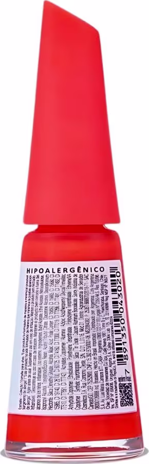 ACETATO DE BUTILA, ACETATO DE ETILA, TOSILAMIDA/RESINA EPÓXI, PIROXILINA, ÁLCOOL ISOPROPÍLICO, ÁLCOOL ETÍLICO, COPOLÍMERO DE ACRILATOS/ACRILATO DE ETILEXILA, CITRATO DE ACETIL TRIBUTILA, DIÓXIDO DE SILICIO. PODE CONTER: (CORANTE VERMELHO 15850, CORANTE VERMELHO 15865, VERMELHO ALLURA 129, AMARELO DE QUINOLINA LACA DE ALUMÍNIO, CORANTE AZUL 74160, CORANTE BRANCO 77000, CORANTE BRANCO 77019, CORANTE PRETO 77266, DIÓXIDO DE TITÂNIO), COPOLÍMERO DE ACETATO DE VINILA E ETILENO, TEREFTALATO DE POLIBUTILENO, PEGOTERATO, FLUORFLOGOPITA SINTÉTICA, ÓXIDO DE ESTANHO, COPOLÍMERO DE ÁCIDO METACRÍLICO E ACRILATO DE ETILA, ÁLCOOL DE DIACETONA.