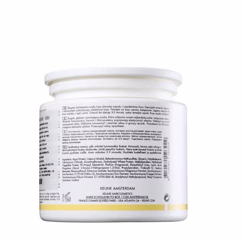 Keune Care Vital Nutrition - Máscara Capilar 500ml: tratamento altamente nutritivo que devolve maciez, brilho e vitalidade aos cabelos secos e danificados. A máscara reparadora é ideal para cabelos grossos e difíceis de pentear, especialmente após mechas ou descoloração. Contém pró-vitamina B5 que penetra nos fios, hidrata e ajuda a dar mais flexibilidade.