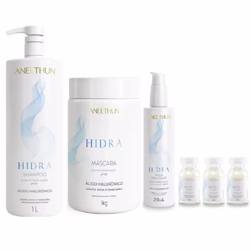 Kit Aneethun Hidra -Shampoo 1L + Máscara 1kg + Finalizador 210ml + Ampolas 13ml (3Unidades)