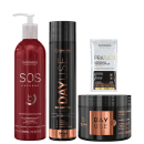 O Kit DayUSE é essencial para cabelos que passaram por qualquer processo químico de salão, proporcionando todo o cuidado especial e profissional que os fios necessitam diariamente para se manterem saudáveis, nutridos, hidratados e brilhantes, principalmente durante as lavagens em casa. Formado por um magnífico shampoo e uma máscara capilar incrível que, juntos, restauram e conservam a hidratação, nutrição e força dos fios na medida certa, além de prolongarem a durabilidade do resultado de químicas.