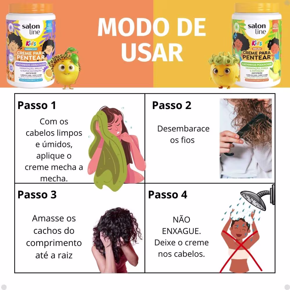 - 01 Creme para Pentear Salon Line Kids Maracujá Cachinhos Hidratados 1Kg.