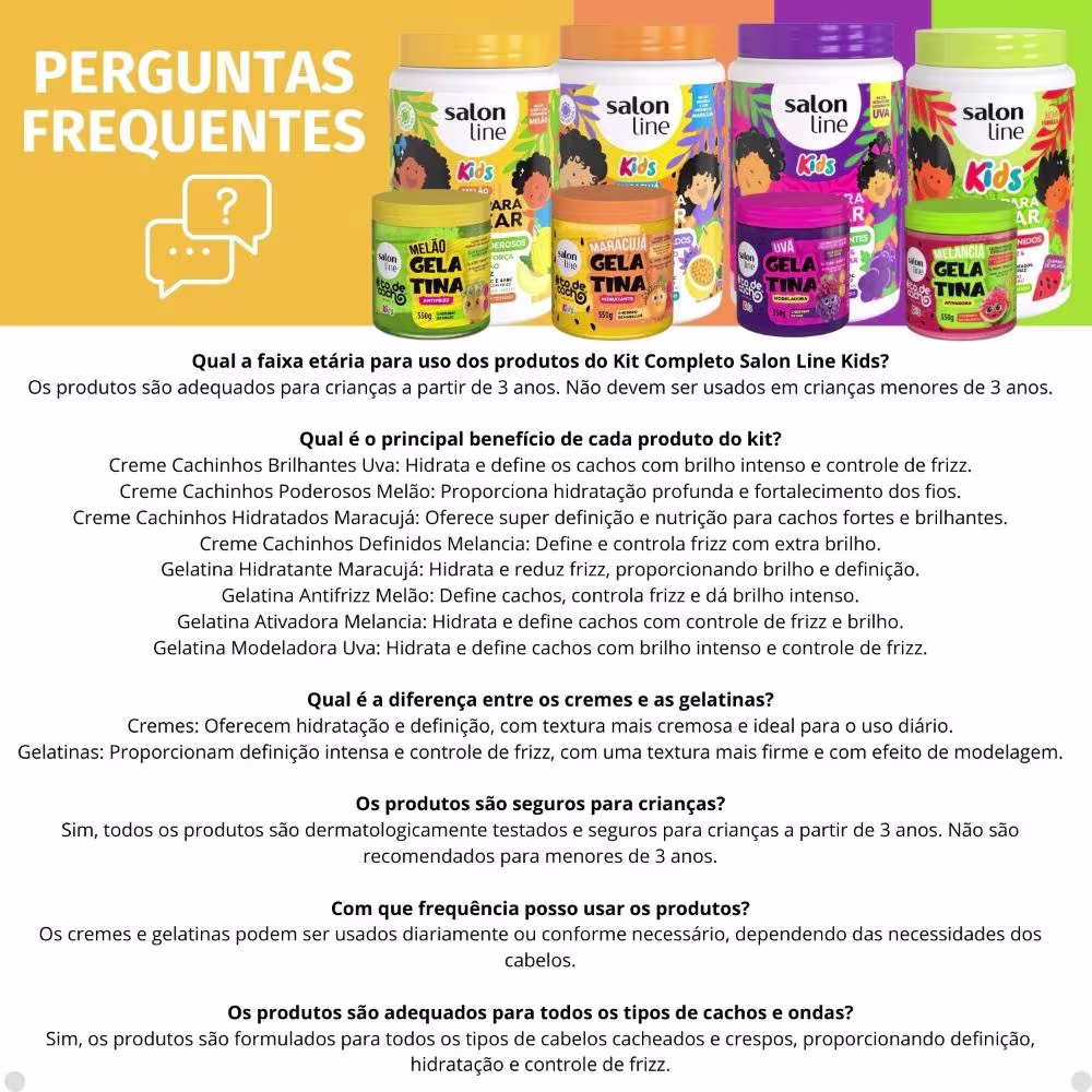 Qual a faixa etária para uso dos produtos do Kit Completo Salon Line Kids?